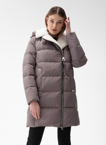 Крой воротника - съёмный капюшон, отделка эко мех