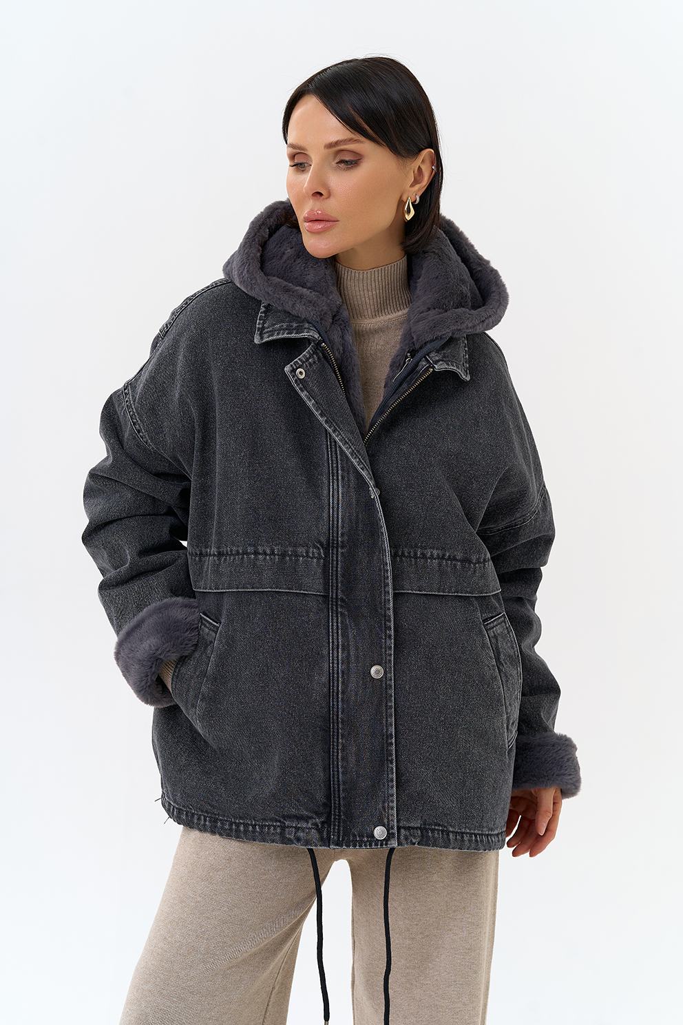 Крой воротника - съемный капюшон, отделка эко мех