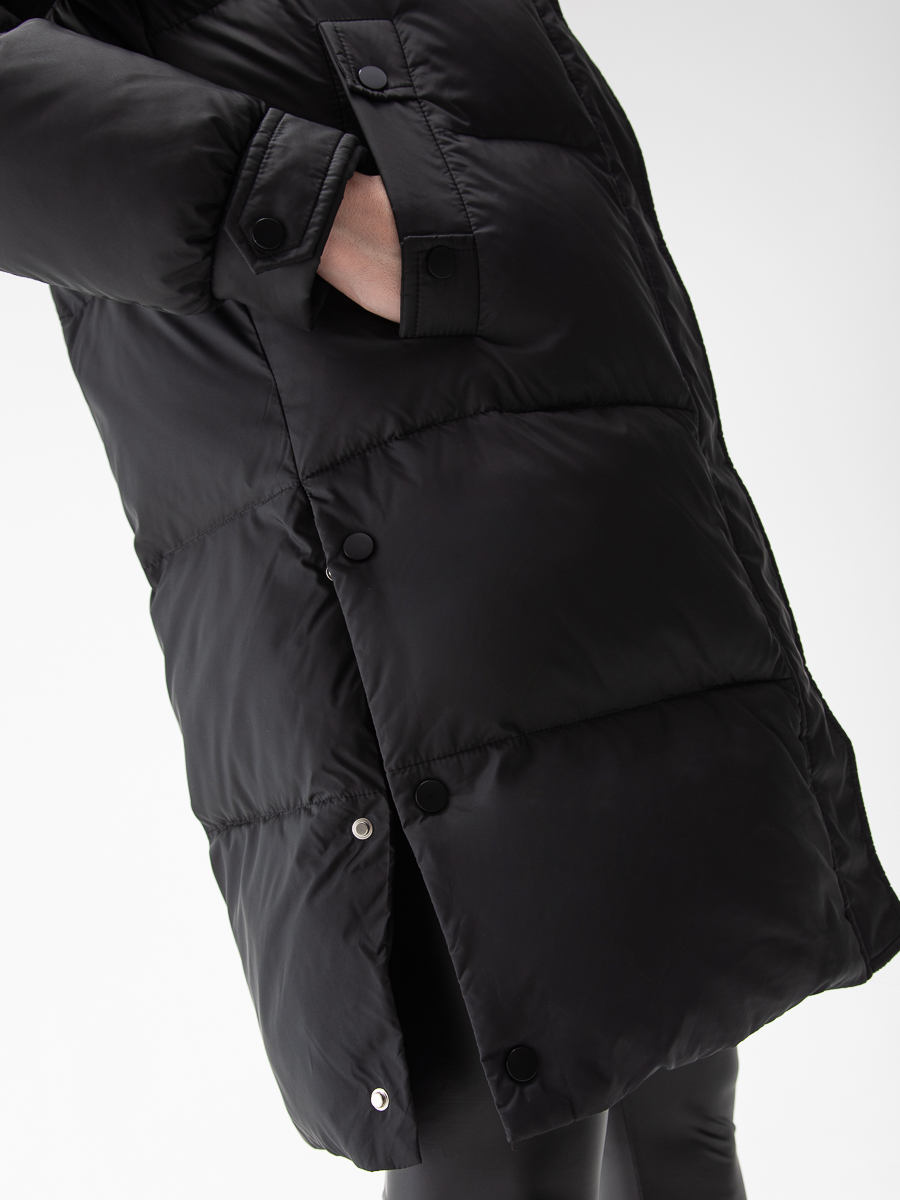 Крой воротника - съёмный капюшон, отделка енот